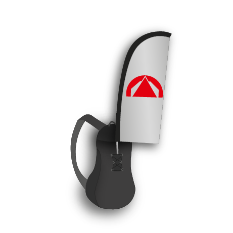 Der Rucksack aus beschichtetem Nylon dient als Tragegestell für die Fahne. Ein guter Halt wird dank der verstärkten Gurte und dem robusten Fahnenbefestigungssystem, welches trotzdem ein geringes Gewicht hat, gewährleistet. Durch einen verstellbaren Gürtel kann der Rucksack individuell angepasst werden und eine komfortable Polsterung sorgt dafür, dass der Rucksack angenehm zu tragen ist. Dank der Netztasche und dem Reißverschlussfach können in dem Rucksack auch andere Dinge als die Fahne transportiert werden. In einer praktischen Zusatztasche auf der Gurtseite lassen die Gestänge sich verstauen.