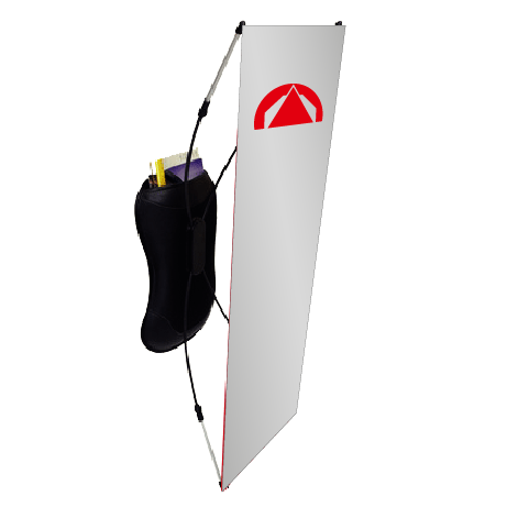 Bestehend aus beschichtetem Nylon dient der Rucksack als robustes und gleichzeitig leichtes Tragegestell für die Fahne. Eine gute Stabilität wird dank dem stabilen Fahnenbefestigungssystem und den verstärkten Gurten erzielt. Trotzdem ist der Rucksack auch bequem zu tragen, dank der komfortablen Polsterung. Der verstellbare Gürtel ermöglicht außerdem, den Rucksack individuell anzupassen. Neben dem Banner können in dem Rucksack in den seitlichen Netztaschen sowie dem Reißverschlussfach auch andere Dinge transportiert werden. In einer praktischen Zusatztasche auf der Trageseite können die Gestänge aufbewahrt werden.